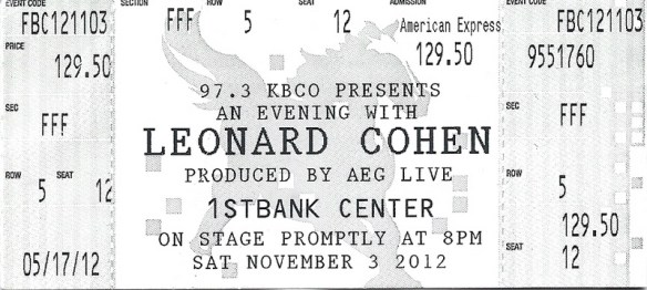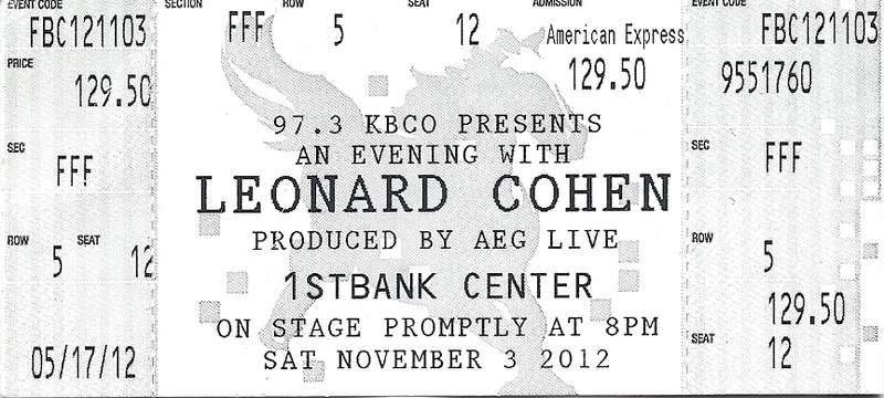 Concert Review- Leonard Cohen, Broomfield, CO 11/3/12