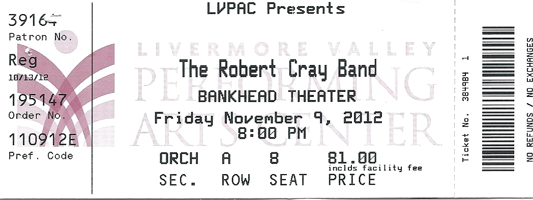 Concert Review- Robert Cray Band, Bankhead Theater, Livermore, CA 11/7/12