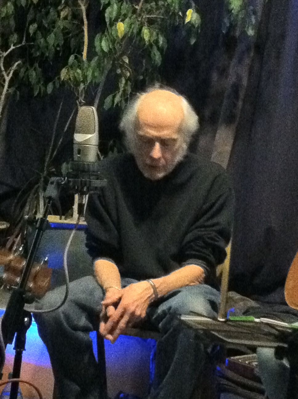 Tony Glover is a man of few words onstage, but he made a crack about the steamy opening pages of Woody’s novel being “D. H. Lawrence stuff,” before reading a less raunchy excerpt from the book, about having a place of one’s own.  Tony rarely sings, but his rendering of “I Ain’t Got No Home” was suitably spare, mournful and plaintive.