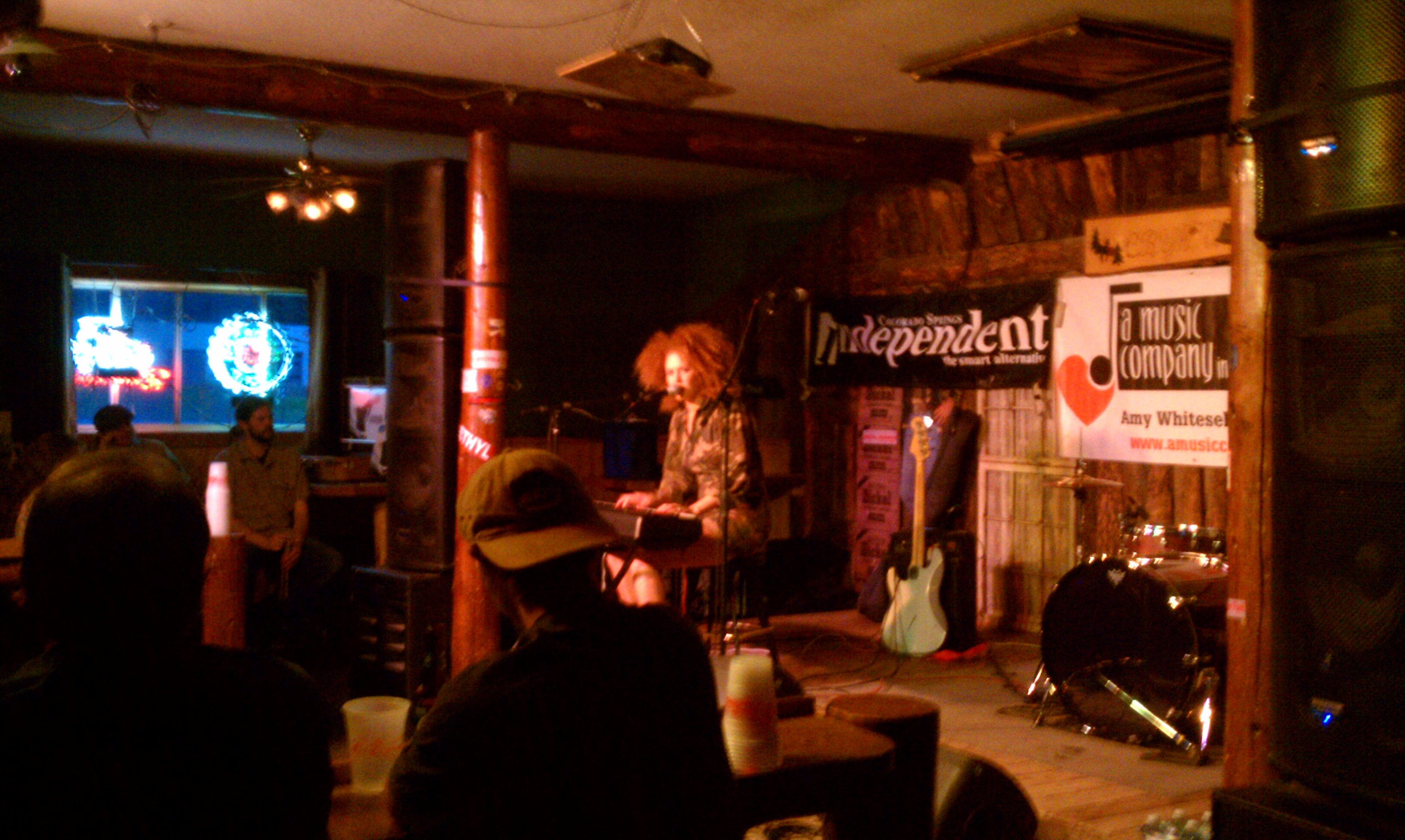 Cassie at Crystola 8/19/13 with guitarist Steve Mignano and whatshisname on drums. Hey, if you’re not named on the web page, you’re not really in the band, are ya?